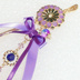 閲覧ありがとうございます! ファイアーエムブレム風花雪月のベルナデッタのイメージで紫を基調にした簪です。 紫のレジンにはグリーン系のパウダーを混ぜ込んだのでキラキラです。(撮影ではパウダーまでうまく撮影することができませんでした) ビーズはグラデーションのガラスビーズとスワロフスキーを使用、リボンは張りのあるサテンリボンです。手縫いで止めているので後ろ側に玉止めの黒い糸が出ております。 【ご注意】 ※素人が製作したハンドメイド品の為、市販品に比べて耐久に劣る可能性がございます。 出来るだけ壊れにくいように意識して製作しましたが、強い衝撃・引っ張りなどは破損の原因になりますので優しく扱ってくださると幸いです。 ※一つ一つ手作りで制作しておりますので、場合によっては写真と多少の誤差が生じる場合がございます。 ※金具などパーツに制作過程による細かい傷があります。 ※細かいパーツを使用しておりますので、お怪我や誤飲防止のため小さなお子様やペットのいる環境でのお取り扱いには十分ご注意ください。 ※万が一違うものが届いたり、こちらが原因の不備がございましたらご連絡下さい。ご相談の上修理またはお取替え致します。 ※現物を見たらイメージと違ったなどでの交換・返品はご遠慮願います。 ※購入後転売はおやめ下さい。 以上、写真や説明をよくご確認の上、ご検討ください。 最後までお読みくださりありがとうございました! あんしんBOOTHパックでの発送となります。 ネコポスを予定しておりますのでお時間の指定はできません。(ポストに投函)