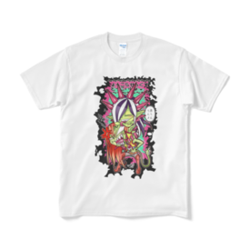 Tシャツ(短納期) - XL - ホワイトゲス悪魔ニードル&キュパのデザインTシャツ。 (ニードルがキュパさまから肩車されてげきおこ中) 【サイズがS~XLまで御座います。 お間違いの無いようにお選びください。】 この商品はpixivFACTORYで作られた商品です。 サンプル画像は完成イメージのため、実物と異なる場合があります。