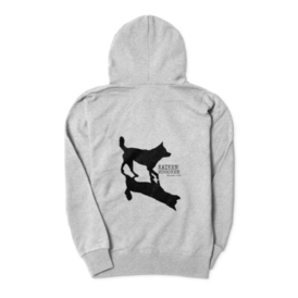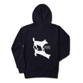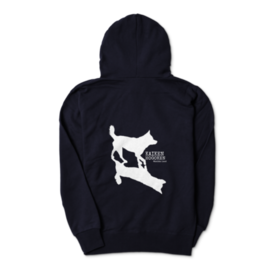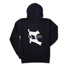 パーカー - XL - ネイビー甲斐犬のシルエットをモチーフに。 「甲斐っトランド」のスタッフ犬たちは、みんな保護犬でした。そう、甲斐犬の彼らもです。 この商品はpixivFACTORYで作られた商品です。サンプル画像は完成イメージのため、実物と異なる場合があります。