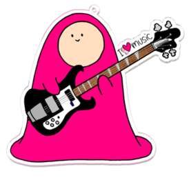 アクリルキーホルダー - 100 x 100 (mm)I LOVE MUSIC - アイラヴミュージック エレクトリックベースVer. 音楽がだいすきなフトンナメクジ。 今日はエレキベースを練習中。 めざせバンド結成!!!