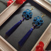 【太】吉祥結びとタッセルのピアス(イヤリング)(青)【和風】【着物】【チャイナ】【中華風】【浴衣】