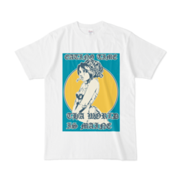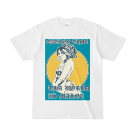 しるく ワールドイズマイン グリーン×イエロー Tシャツ ホワイト