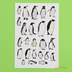 ペンギンのイラストを転写タトゥーシールにしました。 画面上、白地に見える部分は実際には透明になります。 貼り付けたときには、写真とは左右反転します。 ペンギンのイラスト11種をサイズにバリエーションをつけて収録しました。 以下のペンギンをモチーフにしました。アデリーペンギン、イワトビペンギン、オウサマペンギン、コウテイペンギン、コウテイペンギンの赤ちゃん、ジェンツーペンギン、フンボルトペンギン、マゼランペンギン、アゴヒゲペンギン。 小さめイラストなので、手の甲、足首などにつけるワンポイントタトゥーとしてお楽しみください。 全24点(サイズ大 11点、サイズ小 13点) 絵柄のサイズ サイズ大 高さ18〜36mm、サイズ小 高さ12〜24mm。 水で湿らせて貼り付けるだけなので簡単。はがすこともすぐできます。 画面上、絵柄の白い部分、白地に見える部分は貼り付けると透明になります(写真2)。 タトゥーシールとして肌につける以外にも、プラスチックや金属など表面がなめらかなものに貼り付けられます。 【素材】 市販の転写シール 透明タイプ/白地タイプ 【サイズ】 幅100×高さ148mm(はがきサイズ) 【購入の際の注意点】 表面の粗いものにはきれいに転写できません。 水を使って転写させるため、紙など水に弱いものには転写できません。 肌に転写した場合は一日を目安にはがしてください。 シートは湿気を吸いやすい性質があるので、なるべく早めにお使いください。