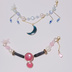 サイズ:全長14cm(留め具含めず) いろはver:革紐、ゴムテグス使用 やちよver:金属製つなぎパーツ使用 (両方共に長さ調節不可) 数ある作品の中よりご閲覧いただきありがとうございます! こちらは【魔法少女まどか☆マギカ外伝マギアレコード】に登場する環いろは、七海やちよのイメージのマスク留めとなっております。 それぞれのキャラクターのソウルジェムと変身時の衣装に因んだモチーフを組み合わせて作ってみました! いろははソウルジェムを繋ぐベルトに見立てた革紐で作り、サイドにチェーンのアクセサリーが付いています✨やちよは髪飾りに見立てたパーツを組み合わせて、ソウルジェムをたゆんだチェーンで繋いでいます🌃 ☆着用方法 ①カニカン(金属の留め具)をマスクの紐に留めます。 ②マスクを着用し、反対側の紐に花型の留め具をひっかけます。 ※強い力で引っ張られたり、激しい動きで外れる可能性がございますのでご注意ください。 ※注意事項※ ・デリケートな作品ですので強い力を加えたり、引っ張ったりしないようご注意ください。 ・金属部分の酸化防止のため、空気の触れない場所での保管をお願い致します。 ・作品によって写真画像と色合いなどの差異がある場合がございます。 ・発送方法はあんしんBOOTHパック(匿名配送の【ネコポス 一律370円】にて発送いたします。詳細については以下のURLよりご確認ください。 https://booth.pm/anshin_booth_pack_guides 商品価格とは別途料金になりますのであらかじめご了承ください。 ※在庫切れの作品につきましてはお手数ではありますがメッセージただけると幸いでございます。 【追記】 ・2025年10月29日より販売価格見直しのため全作品値上げを致しております。詳細については恐れ入りますが当ショップのプロフィール欄よりご確認くださいませ。 ハンドメイド作品にご理解いただける方のご購入をお待ちしております😌