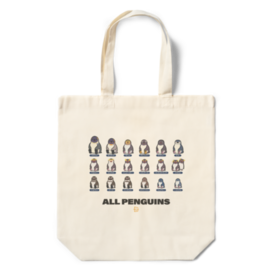 全てのペンギン(諸説あり)を網羅したトートバッグです。 このバッグがあれば、いつでもペンギンの種類を確認できます。 この商品はpixivFACTORYで作られた商品です。サンプル画像は完成イメージのため、実物と異なる場合があります。