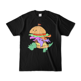 この商品はpixivFACTORYで作られた商品です。サンプル画像は完成イメージのため、実物と異なる場合があります。 あのクソガチャモンスターズより、「ジュラシックキングバーガー」のTシャツ(ブラック)です。