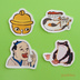 江戸時代に流行した判じ絵の吸着シールです。違う絵柄の4枚で1セットとなっています。 接着剤を使わない自己吸着タイプのラベルを使っているので繰り返し貼ってはがすことができ、貼り跡も残りません。 ツルツルした面に貼れますので、スマホやパソコンなどさまざまなものに貼って楽しむことができます。 判じ絵とは、絵に置き換えられた言葉を当てる遊びのこと。江戸時代末期に大流行しました。その中から、絵を見ただけでもおもしろいものを中心に4点を選び、絵をトレースしてシールにしました。 1.鈴に目がある→すずめ 2.歯+猫がさかさま→はこね 3.目が水になっている→みずがめ 4.カエル(がま)が茶をたてている→ちゃがま 全4点。 図柄のサイズ 長辺55〜64mm 【素材】 吸着ラベルフィルム(ポリエステル) 厚さ0.09mm インクジェット専用ラベル 光沢紙・ホワイト 厚さ0.10mm 表面がなめらかな面には貼れますが、凹凸のある面には貼れません。 【サイズ】 長辺55〜64mm。4枚セット。 【購入の際の注意点】 写真と実物では多少色味が異なる場合、印刷位置にズレのある場合があります。 インクジェットプリンタでプリントし、吸着ラベルフィルムに貼り付け、手作業でカットしているので精密さに欠けるところがあります。 裏面にほこりがつくと吸着力が低下します。一度はがしたシートを後で再利用する場合は、裏面が汚れないよう元の台紙に貼り直す、ビニールで覆うなどしてください。