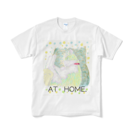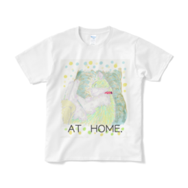 Tシャツ(短納期) - XL - ホワイトAT HOME.猫にとっての我が家は長女の膝の上だ。我がもの顔に幸せそうな顔で寝ている。それを、「困ったなあ」と言いながら、長女が嬉しそうに眺めている。それを、「羨ましいな。私も猫になりたい」と思いながら私が見ている。 ※この商品はpixivFACTORYで作られた商品です。サンプル画像は完成イメージのため、実物と異なる場合があります。