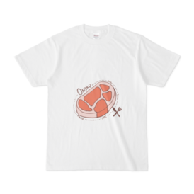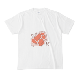 ONIKUの白Tシャツです。 この商品はpixivFACTORYで作られた商品です。サンプル画像は完成イメージのため、実物と異なる場合があります。