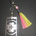 ステンレスで出来ている、チャームで作ったキーホルダーになります。 縦5㎝横2.5㎝厚さ約1.5㎜のチャームとキラキラビーズ、キャラクターをイメージしたサラサラのタッセルが付いています。 他にはあまり無い様な品物かと思います。 チャームは蜜璃ちゃんの刀の鍔をモチーフにデザインしてみました。 チャームと同じデザインの耳飾りをつけたキャラクターの素敵なイラストポストカードが付いています! こちらは写真のパックされている商品が現物になります。他は見本品の写真ですので、サイズなどの参考です、タッセルの色やビーズ、サイズ等に若干の違いがございますので、ご了承の上ご購入下さい。 ハンドメイドのため、細かい傷などが光の加減で見える場合がございます。 側面に切り始めに付いてしまう若干の溝ある場合がございます。 あくまで素人の加工になります完璧を求める方、神経質な方はご遠慮下さい。