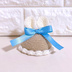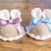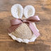 うさぎの耳とりぼんがついた毛糸の帽子です。