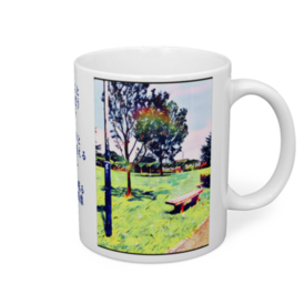a-161 綿帽子とベンチ(公園にて) Cotton hat and bench (at the park) マグカップ