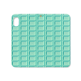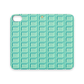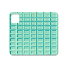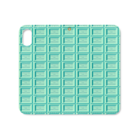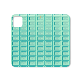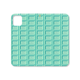 可愛い猫柄のチョコレート 板チョコ風iPhoneケース 手帳型スマホケース ベルトなし ミントチョコ/ロゴありver.