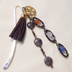 使用素材:ラブラドライト・アベンチュリン・アゲート・ジェイド 基本金属:本体:ロジウム(シルバー・銀)、飾り部分:ガンメタリック(ブラック・黒) 長さ:本体9㎝、飾り部分9㎝ 羽織のカラーイメージで、オレンジのアベンチュリン、ホワイトのジェイド、ブルーのアゲートを並べました。 ほかは、安定のある重みを感じさせる落ち着いた暗めの色合いのパーツを用いています。 ※送料には梱包代が含まれています。クリックポスト・宅急便コンパクトのいずれかで発送いたします。 ※天然石(シェル・淡水パールなどを含む)ビーズは天然物のため、色味や大きさや形状が粒によって異なります。また、通し穴周辺を中心に割れ・欠け・ひび・傷あるものもございます。こちら、ジュエリーとは異なりますのでご了承お願いいたします。 ※天然石・素材の名称・色・形状は素材購入時の商品の記載によっています。