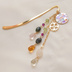 使用素材:エメラルド・ペリドット・ジェイド・スワロフスキー 基本金属:ゴールド(金) 長さ:本体9㎝、飾り部分8㎝ ストールの柄をイメージしたメタルパーツを用いています。 腰回りの宝石めいた飾りから、ドロップパーツや色鮮やかなパーツをたくさん使いました。 ※送料には梱包代が含まれています。クリックポスト・宅急便コンパクトのいずれかで発送いたします。 ※天然石(シェル・淡水パールなどを含む)ビーズは天然物のため、色味や大きさや形状が粒によって異なります。また、通し穴周辺を中心に割れ・欠け・ひび・傷あるものもございます。こちら、ジュエリーとは異なりますのでご了承お願いいたします。 ※天然石・素材の名称・色・形状は素材購入時の商品の記載によっています。