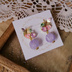 透かしパーツに6㎜のスワロフスキーをメインに、蝶のチャーム、小粒スワロフスキー、フラワーパーツ、プラパールを貼り付け、ピアス本体と合わせました。