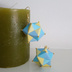 **Christmas sale is now on!** **Discount applied until 27th of December** ¥2,400→¥2,000 If you would like to leave impressive looking both in the city and monitor, this geometrically beautiful earrings will help you. Using Origami paper, it has volume and featherly light weight. The paper earrings are coated twice to make its surface hard enough for daily use. Made in Australia くす玉12面体の頂点に飾りをつけたイヤリングです。 コーティングをしっかり施しているので強度があり、普段使いにも問題ありません。 ボリューム感がある一方とても軽いので、楽しみながら付けてもらえると思います。