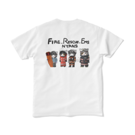 消防隊のニャンズが描かれているTシャツです この商品はpixivFACTORYで作られた商品です。サンプル画像は完成イメージのため、実物と異なる場合があります。