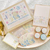 MEMORIES of NOSTALGIA / BEAR 3人の幼なじみが大人になって子どもの頃のお気に入りだったものを持ち寄って思い出話… そんなイメージで作った新作はふわふわパステルカラーでまとめました。 仔猫・仔ウサギ・こぐま、それぞれ色違いお揃のものもありますがお気に入りモチーフや思い出はちょっとずつ異なります (こちらはこぐまちゃんセットです。)  キラキラ星ホログラムのマグネットBOXにグッズが入った スペシャル仕様です。 ===== ●ホログラムマグネットBOX(限定デザイン) ●マスキングテープ ・MEMORIES of NOSTALGIA ゴールド箔 / BEAR- 15mm×10m ・Frill Ribbon / BEAR- 15mm×10m 型抜き(限定デザイン) ・CAMERA FILM / BEAR- 20mm×10m (限定デザイン) ・MEMORIES of NOSTALGIA / BEAR-- 20mm×10m 型抜き(限定デザイン) ●メモ帳 ・120×80mm /カラー40枚 ・170×120mm /カラー40枚 ●ダイカットカード /パール紙 両面カラー3枚(限定デザイン) ●ミニクリアラメポーチ &クリアシール6枚(限定デザイン) ※限定と書いていないものは今後単品販売がある可能性がございます。 BOXはとても繊細なお造りのため、お取り扱いにご注意下さい。 =====