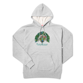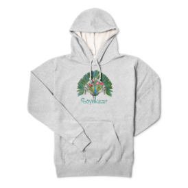 パーカー - XL - 杢グレー(モノトーン)【植物×生き物】デザイン ★孔雀×旅人の木=「旅孔雀」 孔雀と旅人の木をメインに合成してデザイン致しました。 植物や生き物好きの皆様に少しでも良いなと思っていただけるデザインを考えて制作しています。