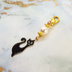 マスクチャーム すらりとした黒猫モチーフとスワロフスキーパールのチャーム
