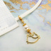 マスクチャーム 三毛猫フェイスモチーフとスワロフスキーパールチャーム ゴールドカラー