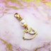ゴールドカラーの三毛猫をかたどった猫フェイスモチーフにクリスタルホワイト・スワロフスキーのパールで組合せた大人可愛いマスクチャームです ゴールドとホワイトの色の組合せは華やかさと優しさを演出します つけて歩くたびにキラキラと揺れて輝きますので、猫好きをしっかりアピールできます また、耳周りにつけるとピアスのように見えます マスク以外にもチャームとしても使えますので、キーホルダーの彩りにも、デスクで飾って猫をお散歩させたり、お手持ちのチェーンに通せばネックレスにもなります マスクチャームとしてご利用の場合には紐状のマスクに適しています ※モチーフは真鍮にシルバーメッキ、金具などはスチール製ですので、金属アレルギーの方はご注意ください ※こちらは金具のカニカンをナスカン(約22mm)に変更が可能です。フィット型のヒモ部分が広いマスクに適しています 「材質」 猫パーツ 真鍮にメッキ スワロフスキーパール 金具:スチール 「サイズ」 全長(カニカン含む):約33mm 猫サイズ:約15mm×11mm パール:直径約6mm 重量:約1.2グラム ※ご使用のモニターの色の違いにより、実際の商品と色味が若干異なる場合がございます。予めご了承ください NN-MC35