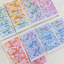 水彩の模様を背景に、色々な書体で「ありがとう」の言葉をのせました。 文字の色は背景色に合わせたものと白文字とを混在させています。 その日の気分で好きな色を選んでお使いいただいたり…カラフルな色の組み合わせをお楽しみください☆ シールを貼った写真は、はがきサイズの袋と、その半分サイズの袋です。