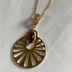 炭治郎の日輪刀の鍔をイメージしたステンレス製のパーツと、水の呼吸とヒノカミ神楽のイメージの特殊ガラスを合わせたネックレスです。