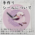 丸シール部分:直径60mm 耐水シール:水にぬれても滲まず、結露してもはがれにくいタイプです。 軽くなら洗えます。 丸く剥がせるようになっているシートに印刷されたものを手作業で切っています。 四角の余白にばらつきがありますが、シール部分の大きさは均一です。
