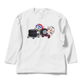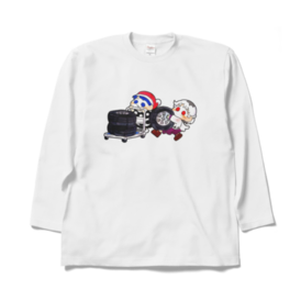 タイヤを運搬するドレサグロングスリーブTシャツ ホワイト