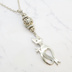 シルバーカラー スマートな猫シルエットモチーフと透かしメタルビーズのネックレス 長さ調整可 アジャスター可