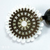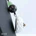 コットンで作った、つまみ細工のネックレスです。布には白で柄が入っています。