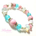 こちらは《ぼたん》キャラブレスレットです。 とりあえずぼたんちゃんは作ろ……と思って作りました。水色とピンク超絶可愛いです!(笑) 今回は花座金入れました。いいメタルパーツなので、どうしても花の御仁に使いたくて!!! わりとシンプルめなデザインを目指しました。さっぱり可愛い女の子のイメージなので……しかしほんと色が可愛い……また作りたい(気が早い 内径:5cm前後 内周:15cm 使用ゴム:オペロン ゴム色:白 メッセージいただければ、最大17cmまでは無料でお直しいたします。 ゴムを切って直すので、在庫によってはゴム色・組み上がりのデザインが変わる場合があります。 発送は定型外orクリックポストになります。 保証のある方法をご希望の場合はメッセージくださいな。今は上記の送料込みになっています。 BOOTH手数料が値上げしたので、以前の値段より高くなっています。ごめんなさい…… 化粧箱は購入してきたので以前の物とはデザインが違いますが入れて配送します。安心!(笑)