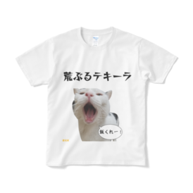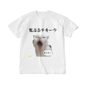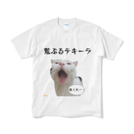 Tシャツ(短納期) - XL - ホワイト猫見家の猫店長、テキーラのTシャツです。 店長なのに、お客様のフードを狙ったり厨房に入ってつまみ食いをしたり、、、と、破天荒な店長。 お仕置き部屋(ケージ)に入れられている時の懇願は可愛い!?一面も(^_^;) お腹が空きそうな時は、このTシャツを着ましょう(笑) この商品はpixivFACTORYで作られた商品です。サンプル画像は完成イメージのため、実物と異なる場合があります。