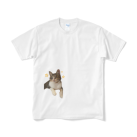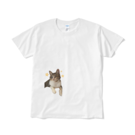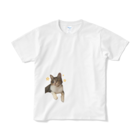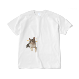 Tシャツ(短納期) - XL - ホワイト猫見家のチーママ(!?)のモモちゃん⭐︎ 成猫なのに、まだまだあどけなさが残る女の子。 ひょっこりなモモちゃんTシャツです! この商品はpixivFACTORYで作られた商品です。サンプル画像は完成イメージのため、実物と異なる場合があります。