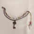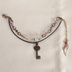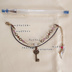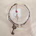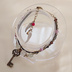 使用素材:フロスト水晶・レピドナイト・プレイナイト・スワロフスキー・珊瑚 基本金属:金古美(真鍮美)、紐留めのみ銀古美(古銀) 長さ:14㎝+アジャスタ分5cm 帽子についているボンボンのイメージで曇りのあるフロスト水晶を中心に置きました。それに並べて、瞳の色のイメージでプレイナイト、髪の色のイメージでレピドナイトを使っています。 アジャスタの先には『赤い鳥』をイメージし、赤い珊瑚と羽パーツを付けました。 ペンダントのモチーフから、鍵のパーツを使用しています。こちらは紐部分に固定しておりませんので、エンドパーツの間で動くようになります。写真では中央寄りに鍵を置きました。 童話の世界の雰囲気を出すために、全体的にアンティーク調のカラーにしています。 ※送料には梱包代が含まれています。クリックポスト・宅急便コンパクトのいずれかで発送いたします。 ※天然石(シェル・淡水パールなどを含む)ビーズは天然物のため、色味や大きさや形状が粒によって異なります。また、通し穴周辺を中心に割れ・欠け・ひび・傷あるものもございます。こちら、ジュエリーとは異なりますのでご了承お願いいたします。 ※天然石・素材の名称・色・形状は素材購入時の商品の記載によっています。