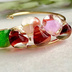 フェオ=ウルをイメージしたドロップビーズのリングです。 ピクシー族の中でも艶やかな色合いを纏う美しき枝らしさを表現しました。 使用している一部のドロップビーズはランダム模様となっています。 ◇主な素材:金属、ガラス、レジン ◇指輪は11号サイズですが、リング台を曲げて多少の調整は可能です(自己責任でお願いします) ・本作品はハンドメイドのため、写真と少々異なる場合がございますが、作品の特徴とご理解頂ければ幸いです。 ・ブラウザ等環境の違いで多少の色の誤差が生じることがございます。 ・強い衝撃を与えると破損の原因になりますので、お取り扱いには十分ご注意下さい。 ・緩衝材で梱包の上で発送させて頂きますが、万が一到着時に破損等ございましたらご連絡ください。