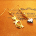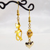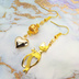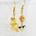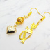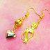 スマートな猫シルエットモチーフとハートのアシンメトリーピアス 透かしメタルビーズ ゴールドカラー