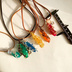 「魔法の力を秘めた魔法石をアクセサリーにしたら」 をイメージし、宝石を模したレジンをワイヤーで包みました。 金具部分もワイヤーで作りました。少し大きめで後ろ姿も可愛いです。 お手持ちのネックレスチェーン、キーホルダーなどに付け替えてもお使いいただけます。 サイズ 約5cm ペンダントの長さは40〜55cmで調整可能 長くしたい、初めから切っておいて欲しいなどご要望あればお気軽にご相談ください。追加料金ありません。 ワイヤー 銅(変色防止剤:エナメルカラー) レジン スウェード 合皮 *************************************** ご覧いただきありがとうございます。 トラブル防止のため、以下の注意点を必ずお読みください。 ・お届けした商品に破損や不備、商品の不足があった場合、商品到着後3日以内にご連絡ください。事実確認の上で、至急対応をさせていただきます。 ・こちらの不備以外での返品や返金の対応はお断りしております。 ・ハンドメイド作品ですので、お値引き交渉などは承っておりません。 ・お使いの端末や閲覧環境により、写真と実物の色味や質感が多少異なって見えることがございます。色味やパーツなどご質問いただければ写真を撮ってできるだけお送りします(自然光・夜・蛍光灯の無加工写真が欲しい、裏面が見たい等)お気軽にご相談ください。 ・小さなお子様やペットがいるご家庭は、誤飲にお気をつけください。事故が起きましても、責任を負いかねますのでご了承ください。 最後まで読んでいただき、ありがとうございました。 気になる点がございましたらお気軽にご質問下さい。