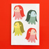 疫病退散! アマビエのイラストをアイロン転写シールに印刷しました。 必要な部分をはさみで切り取り、Tシャツやトートバッグなど、布製のものにアイロンを使って貼り付けてください。 貼り付けると、写真の状態とは左右反転します。 印刷がない部分は透明です。 アマビエは江戸末期、熊本に現れた半人半魚の妖怪。光輝く姿で海中から現れ、赴いた役人に対して「私は海中に住むアマビエと申す者なり」と名乗り、「当年より6ヶ年の間は諸国で豊作が続くが疫病も流行する。私の姿を描いた絵を人々に早々に見せよ。」と予言めいたことを告げ、海の中へと帰って行った。このことから、アマビエの絵は疫病退散にご利益があると言われています。 当時の瓦版に描かれた絵をもとにかわいくアレンジしたアマビエを3パターンの北欧カラーで描きました。 絵柄のサイズ 幅45×高さ53mm 【素材】 アイロン転写シール(インクジェットプリンタ用) 白色・薄色生地用 【サイズ】 はがきサイズ(幅100×高さ148mm) 【購入の際の注意点】 市販のインクジェットプリンタを使って印刷しているので、精密さに欠けるところがあります。また、紙の端がインクで汚れていることがあります。あらかじめご了承ください。 使用できる布は綿100%および綿とポリエステル混紡(綿50%以上)。高温のアイロンがけできない生地には使用になれません。 厚手の生地、縫い目や段差のあるところはおすすめできません。 Tシャツの場合は転写を行う前に柔軟剤なしで洗濯を行ってください。 目の粗い布地の場合、転写の仕上がりにムラができることがありますのでご注意ください。
