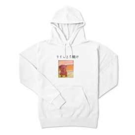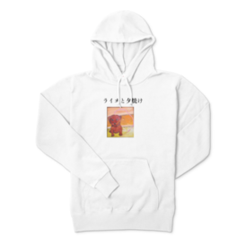パーカー - XL - ホワイトこの商品はpixivFACTORYで作られた商品です。サンプル画像は完成イメージのため、実物と異なる場合があります。 商品名 ライオと夕焼け パーカー ライオン 海 アクリル絵の具でデザイン 熊本アーティスト