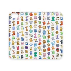 手帳型iPhoneケース(ベルトなし) - iPhone12 mini - ストラップ穴 なしどうぶつ 恐竜 鳥 妖怪 色んな生き物のおすわりスマホケースです。