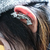 つめたく鋭い印象をまとった金属製の魚の骨格のパーツを、ノンホールピアスを用いたインダストリアル風イヤリングに仕上げました。魚の向きが決まっていますので左耳への装着推奨です。 2箇所穴をあけ、それらを長い棒で繋ぐピアス「インダストリアル」。 その名の通り無機質で機械的な雰囲気と、圧倒的な存在感で、ピアス愛好家たちの中でも憧れのピアスのひとつですが、あけるのが難しい、一度に2箇所穴をあけるため心身への負担が大きい、目立ちすぎて仕事や学校につけていけないなど、ハードルが高く、あけたくてもあけられない方が多くいらっしゃるピアスでもあります。 そんなインダストリアルを手軽に楽しめるよう、ノンホールピアスを用いたインダストリアル風イヤリングを作りました。 素材:金属 サイズ:飾り部分50mm 重さ:9g ※すべて手作業で製作しているため、同じ作品でも少しずつ個体差があり、写真と多少異なる場合がございます。 ※個人で製作しておりますハンドメイド作品であることをご理解の上、ご購入いただけますと幸いです。 ※金具部分は金属のため、ゆっくり曲げていただき、ご自身に合うように変形することが可能です。しかし、繰り返し負荷をかけると金属疲労で折れてしまう場合がございます。お取り扱いには十分ご注意くださいませ。 #骨 #骨格 #標本 #透明標本 #博物館 #魚 #病みかわいい #ゆめかわいい #メンヘラ #地雷 #量産 #V系 #耽美 #ゴシック #夜 #夜光昼夢 #パンク #ゴス #ロリィタ #ロック #ストリート