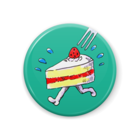 缶バッジ - 44mmフォークから逃げているケーキの缶バッジです。 この商品はpixivFACTORYで作られた商品です。サンプル画像は完成イメージのため、実物と異なる場合があります。