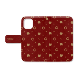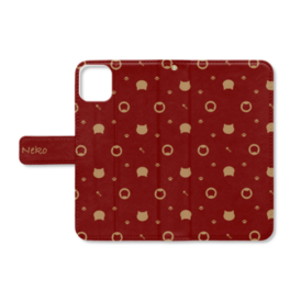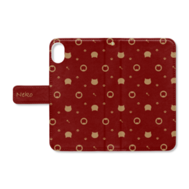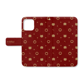 猫と肉球、時々おさかな モノグラム風 手帳型iPhoneケース 手帳型スマホケース - ニルヴァナ