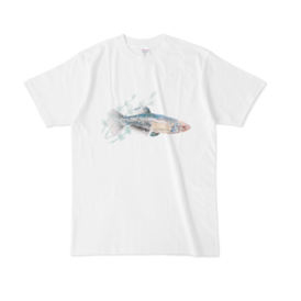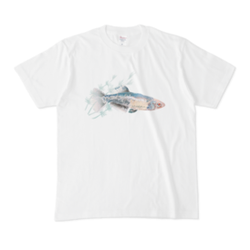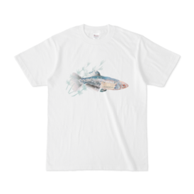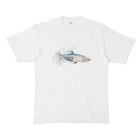 Tシャツ - XL - 白アルビノコスモのイラストです。 全身に散りばめられたラメとヒカリ体型が特徴的なめだかです。 推しめだかを応援するのにおすすめです。 *この商品はpixivFACTORYで作られた商品です。サンプル画像は完成イメージのため、実物と異なる場合があります。