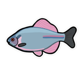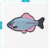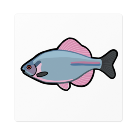 ステッカー - 100 x 100 (mm)(1)日本の淡水魚「カネヒラ」のデフォルメイラストのステッカーです。鮮やかな水色の体に桃色のひれが映える、とっても綺麗なお魚です! サイズは100×100(mm)です。 通常の白い背景のものと透明な背景のものをご用意しております。 背景が透明になっているものは、どんな場所でも色を気にせずにお使い頂けます。