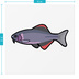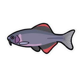 ステッカー - 100 x 100 (mm)(1)日本の淡水魚「ヤリタナゴ」のデフォルメイラストのステッカーです。暗い紫色の体色に輝く淡い桃色と、ひれに入る鮮やかな赤色が美しいお魚です! サイズは100×100(mm)です。 通常の白い背景のものと透明な背景のものをご用意しております。 背景が透明になっているものは、どんな場所でも色を気にせずにお使い頂けます。
