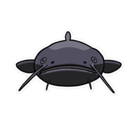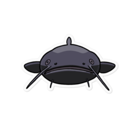 ステッカー - 100 x 100 (mm)(1)日本の淡水魚「ビワコオオナマズ」のデフォルメイラストのステッカーです。正面から見た際の顔を描いています。名前の通り琵琶湖にのみ生息していて、外来種のブラックバスさえも捕食するワイルドさのある、カッコよくて面白いお魚です! サイズは100×100(mm)です。 通常の白い背景のものと透明な背景のものをご用意しております。 背景が透明になっているものは、どんな場所でも色を気にせずにお使い頂けます。